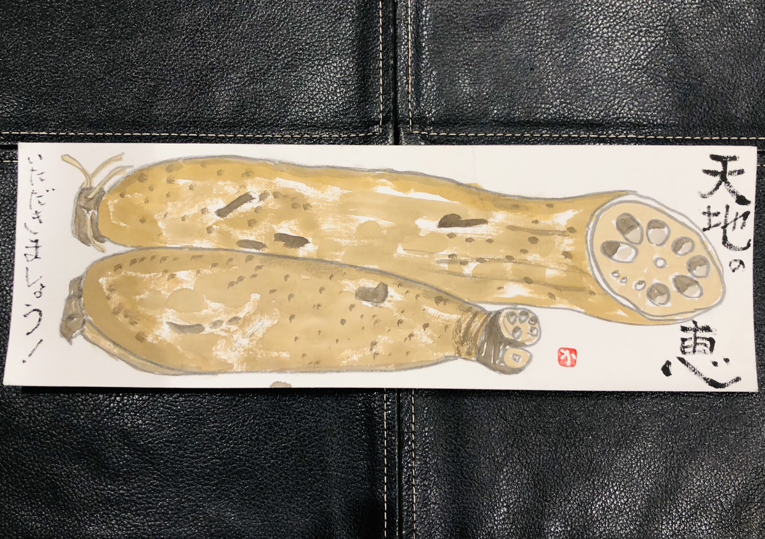 自園の【あさはた蓮根】を知人から頂いた蓮根に感動され、絵手紙として送られてきました🎶